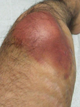 今は、腫れた膝に水が溜まっていたのを何度か穿刺を繰り返し(100cc以上の水)それがいつの間にか膝の裏に移動?し、しこりのようになって軽く痛みも。
