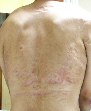 ・・・って誰やねん!!すんません、おにばばでえす。あ、呑んでませんから( ̄ー ̄;) 症状は本当に人それぞれやなあ・・と、しげしげ見ちゃいました。初対面で何も知らずに背中だけ見せられたら(そんなこと有り得へんけど)、同じ病気とは思わんやろうなあ。でも、やっぱり美しく治ってきてるのね・・。私も内出血や、むくみや、なんやかや、いずれましになるものと夢見がちに期待しております。モ氏のいろんな症状(手術したりしてきた)が治まったのが2年前・・・。私もそう。それまであちこちに潰瘍できて、脂肪織炎おこして、化膿して、切って・・・何度痛い思いをしたことか。あれから、皮膚に赤みやしこりを見つけるたびにびびってきた。今は本当にありがたいです。モ氏と同じくお調子乗りなおばはんですので、気をつけねばならぬ・・・と思い直したしだいであります!!・・・が、(が、かよ)楽しめるのも今かと・・・。えへ。