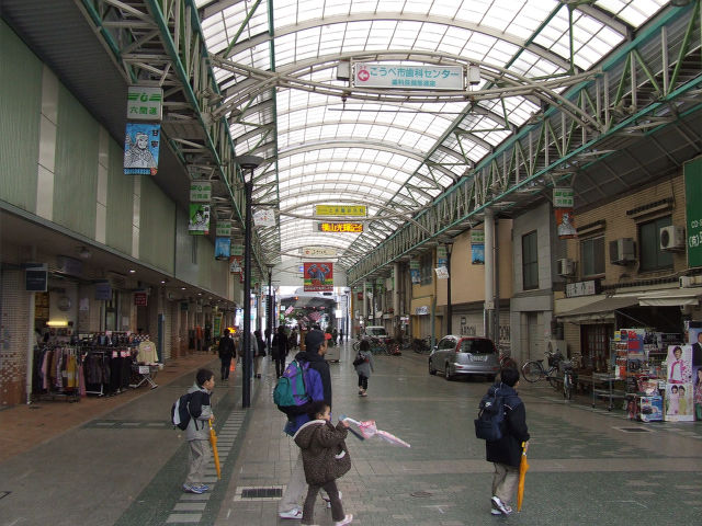 スタンプラリーも実施されており、対象となる商店街には登場人物のバナーが。