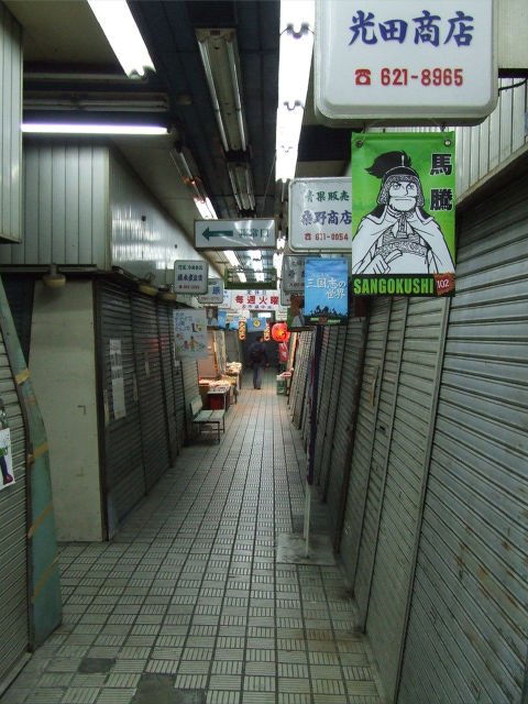 商店街に溶け込む三国志。