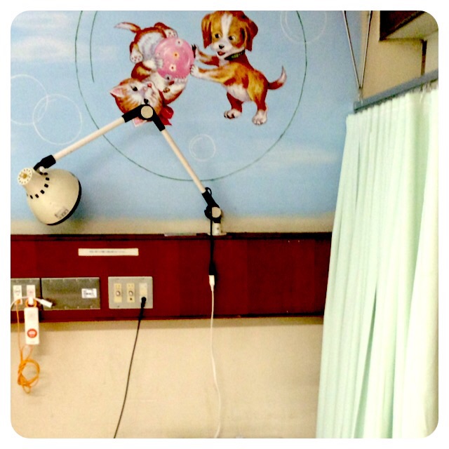 病棟は19年前にいた病棟より古い感じ、かつ、元小児病棟だったのか、病室の壁は昭和メルヘンな感じで、いい年齢の男達が共同生活をする場所にしてはややシュールな気がします。