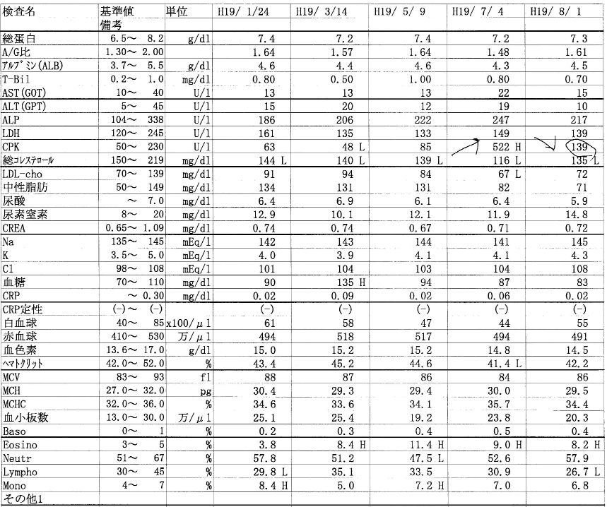 主な理由の一つは結局前回のCPK上昇の原因がはっきりしない事。