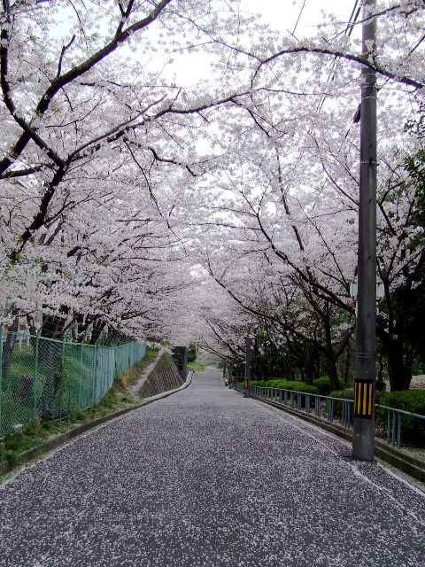 右:散った花びらが道を染めて、まさに桜道な感じ