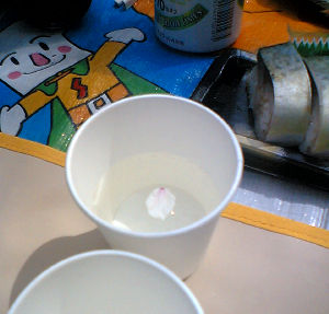 で、お酒が無くなってから空のコップにやっと落ちてきたとか。